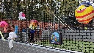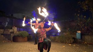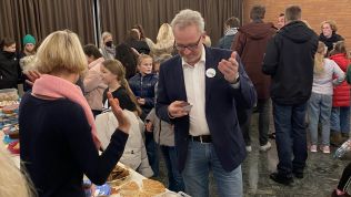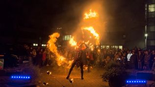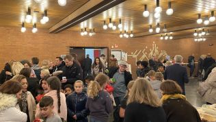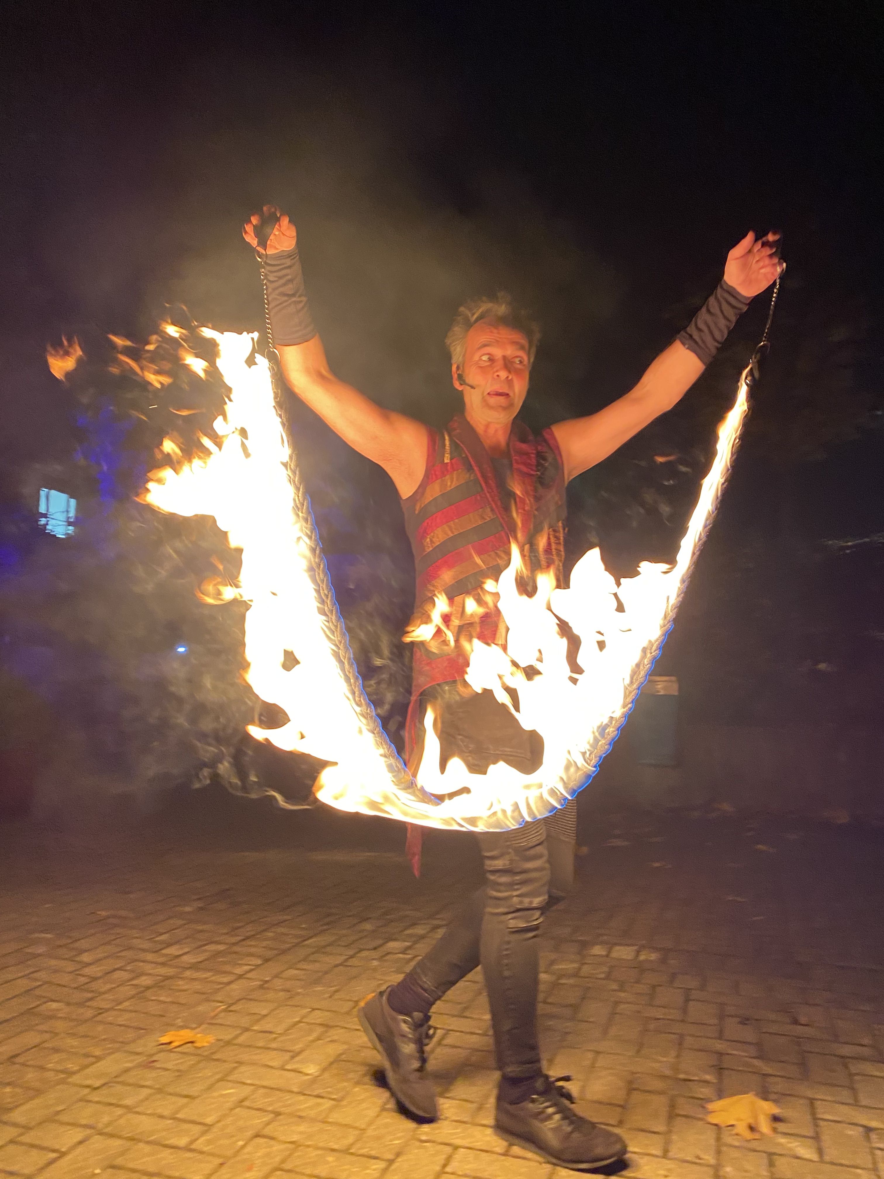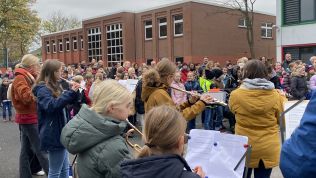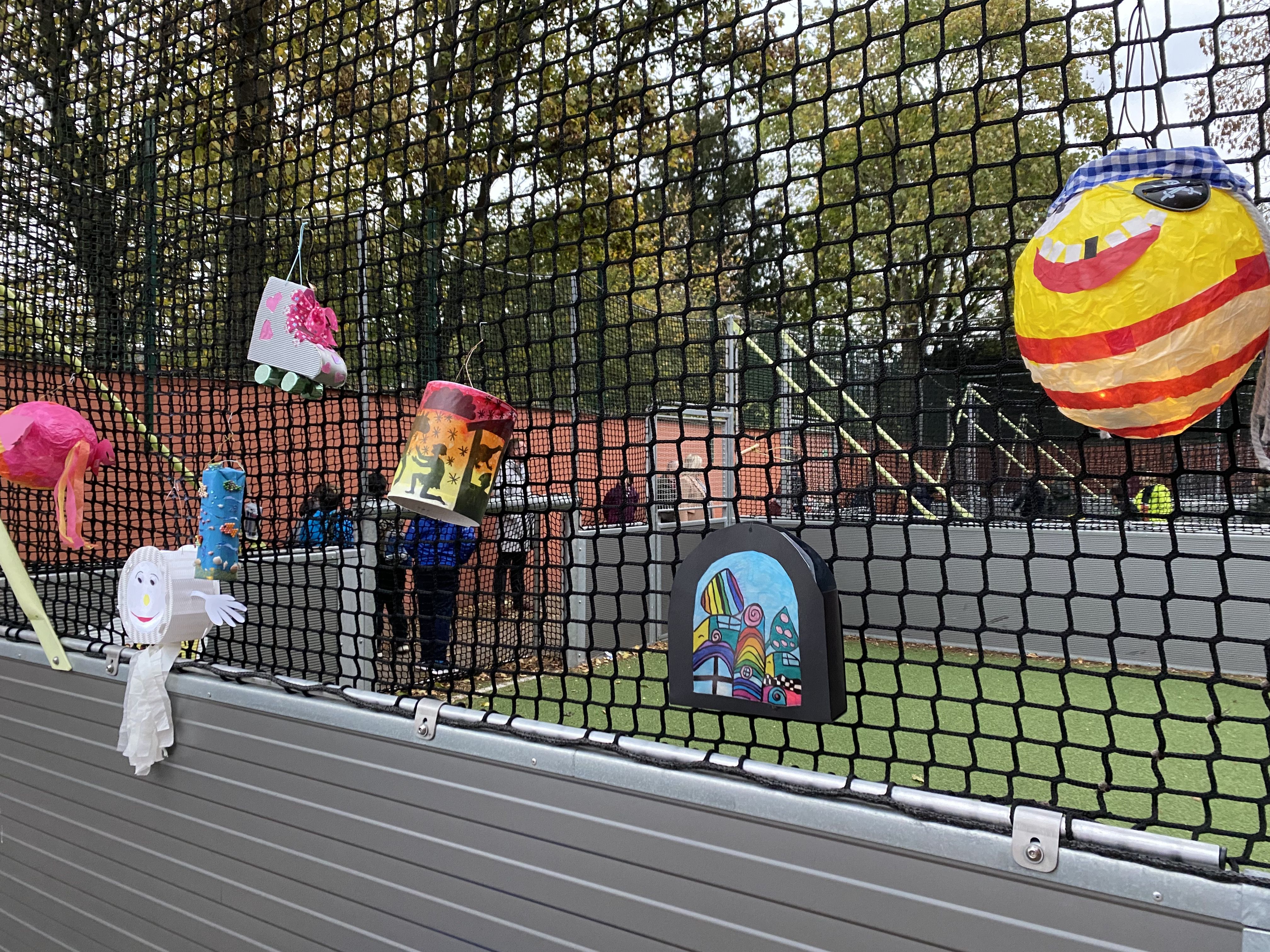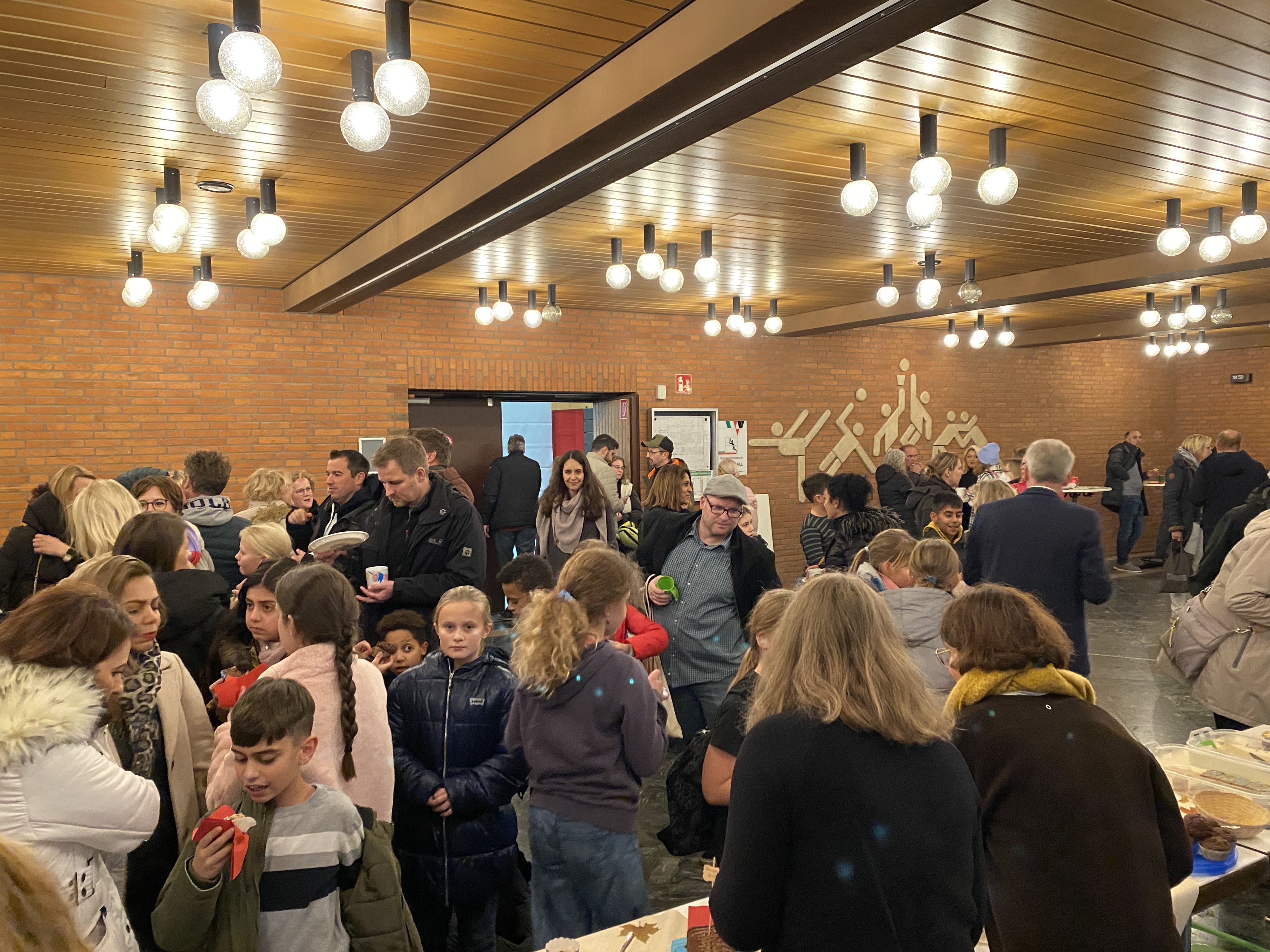 Nun lebte sie wieder auf: und zwar draußen beim Schein der Laternen. Musikalisch eingestimmt wurden alle Gäste von Wood 'n'Brass unter der Leitung von Philipp Niersmans und Katharina Adams. Das sportliche Begleitprogramm - ein Völkerballturnier aller 5. Klassen - sorgte für zusätzliche Bewegung, während ein Kreativangebot im Kunstraum den gemütlichen Teil für die Kinder darstellte. Die Eltern hatten Zeit und Gelegenheit für weitergehende Gespräche. Und nach einem feurigen Abschluss von Gerhard Leßmann, Zauberkünstler und Lehrer, gab es vom Elternverein noch für jedes der Kinder samt Geschwister und Gäste einen Weckmann.
