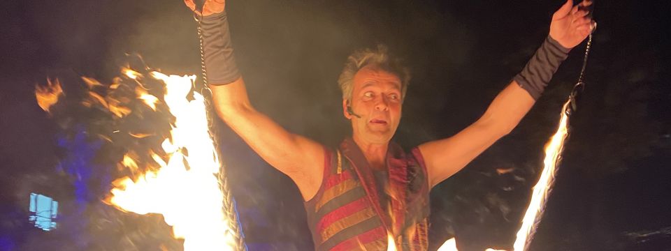Abschluss des Begegnungsnachmittags: das Team von "Chapeau Bas!" um Lehrer und Zauberer Gerhard Leßmann in Aktion.