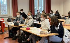 Am 14. Januar 2022 waren 26 Schülerinnen und Schüler aus der 9. Klasse, der Einführungsphase und der Q1 als Debattatierende und vier Schülerinnen aus der Q2 als Jurorinnen dabei. Beaufsichtigt von Franziska Deventer und Julia Haustein trafen sich die Schüler und Lehrer, um acht von ihnen zu schulinternen Siegern zu küren, welche die Schule in der nächsten Runde in Dinslaken vertreten werden.
