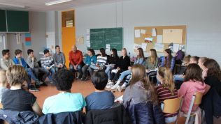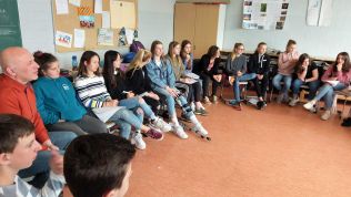 Die erste Besuchsstunde am 3. Mai 2019 diente zum gegenseitigen Kennenlernen, dabei bombadierten die Schülerinnen und Schüler Herrn Yetim mit privaten und politischen Fragen. Nach anfänglicher Schüchternheit wurden nicht nur Fragen zu naheliegenden Schulthemen gestellt, sondern auch die großen Fragen wie Extremismus oder internationale Politik thematisiert.