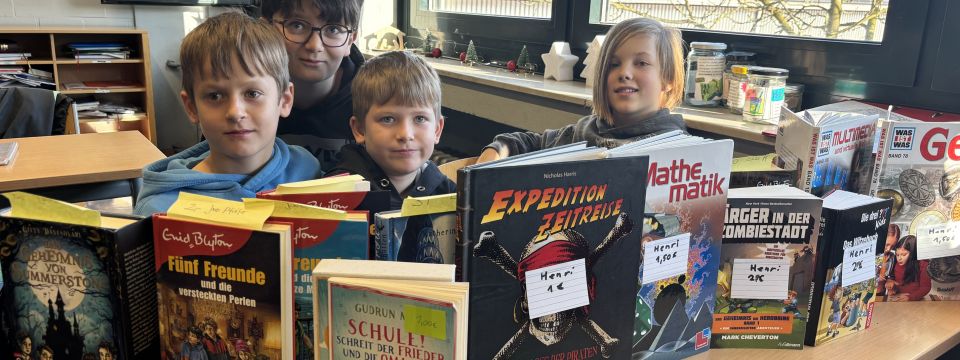 Ein besonderes Highlight waren die Büchertrödelmärkte, die in einigen Klassen organisiert wurden. Hier wechselten Lieblingsbücher den Besitzer, neue Leseschätze wurden entdeckt und ganz nebenbei wurde über Nachhaltigkeit und den Wert des gedruckten Buches gesprochen.