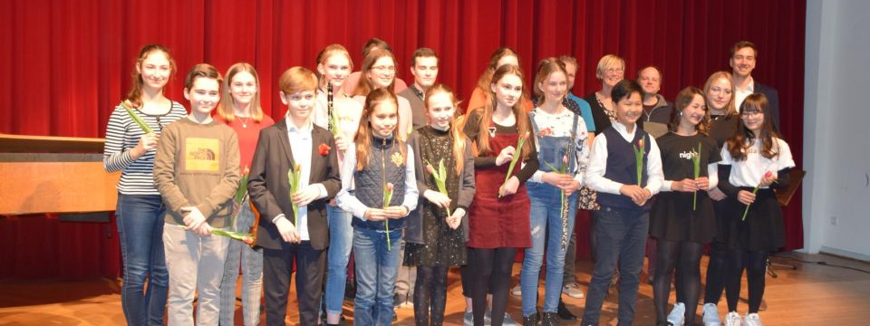 Durch die abwechslungsreiche Gestaltung des Musikprogrammes bekamen die Zuhörer, neben klassischen Stücken, auch Popsongs, wie „Can’t help falling in love“ von Elvis Presley in einer originellen Version für Gesang und Ukulele, zu hören. Die jungen MusikerInnen, die sich schon im Rahmen des Wettbewerbs Jugend Musiziert zum Landes- oder sogar Bundeswettbewerb gespielt hatten, meisterten alle ihren Auftritt auch auf der Bühne des Gymnasium Adolfinum großartig.