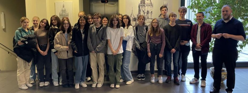 Der Hebräischunterricht ist nicht nur Sprachunterricht, er ermöglicht darüberhinaus eine Begegnung mit dem Judentum. Doch was wissen wir eigentlich über diese Religion? Woran glauben Jüdinnen*Juden und wie leben sie ihren Glauben im Alltag? Um dies zu erfahren, besuchte der Hebräischkurs der Einführungsphase am Donnerstag, den 27. Oktober die jüdische Gemeinde in Krefeld.