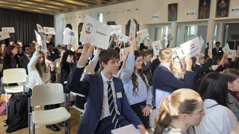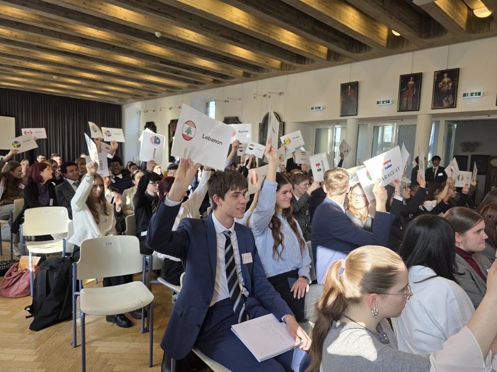 Mit Freude beim englischsprachigen Austausch über internationale Politik: Delegation des Adolfinums