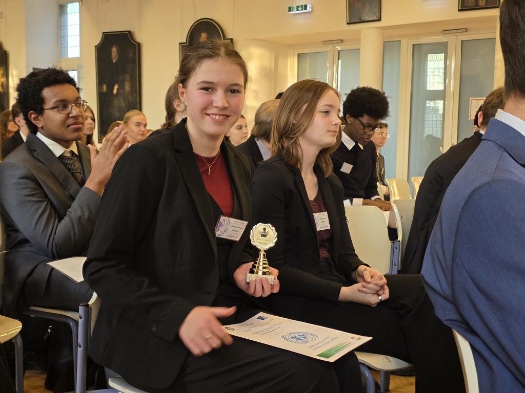 Dann wurde es spannend: Wer konnte besonders überzeugen? Rike Gärtner und Kim Schirra erhielten eine Honourable Mention für ihre herausragende Teilnahme, während Coralie Salenga als Best Speaker des Security Councils ausgezeichnet wurde.