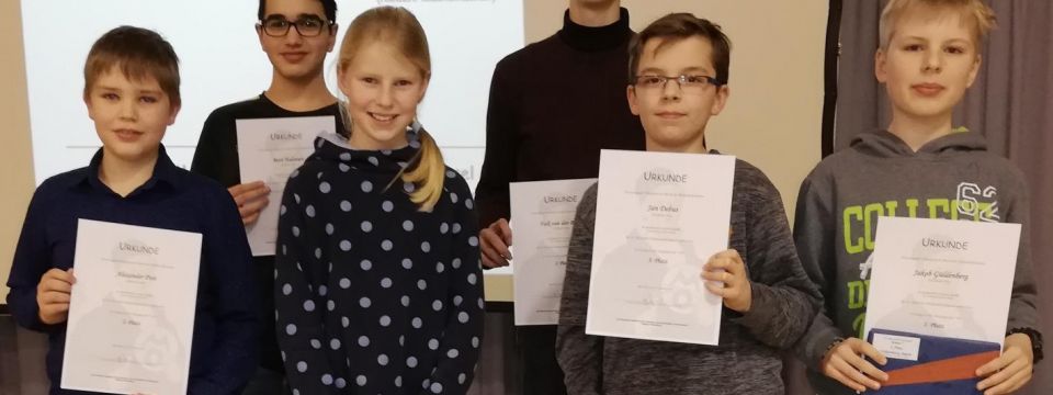 Am 15. Januar fand die Siegerehrung der Kreisrunde, an der über 20 Schülerinnen und Schüler unserer Schule im November teilgenommen hatten, im Amplonius-Gymnasium in Rheinberg statt.