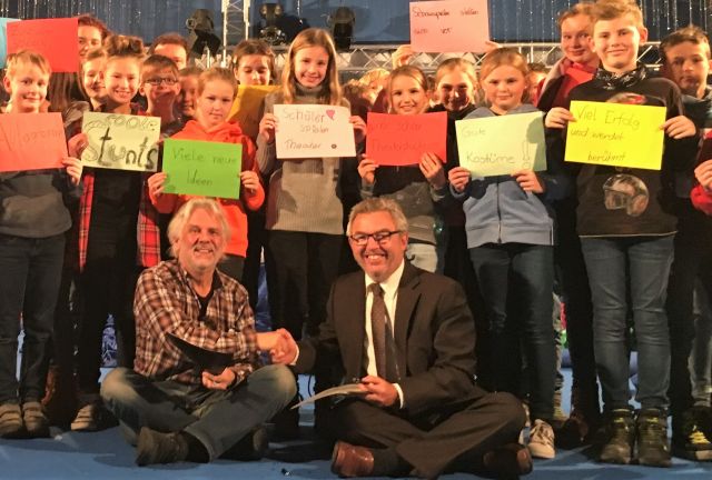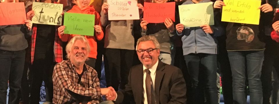 Nachdem die Schüler ihre Wünsche vorgestellt und mit den Schauspielern über das Stück gesprochen hatten, kam es zur Vertragsunterzeichnung von Ulrich Greb, Intendant des Theaters, und Schulleiter Hans van Stephoudt. „Unsere Schüler profitieren von der Zusammenarbeit mit dem Schlosstheater Moers, von daher ist es für uns selbstverständlich die Kooperation fortzusetzen“, sagte Hans van Stephoudt bei der Vertragsverlängerung.