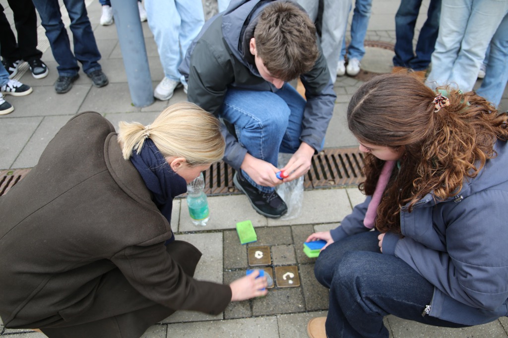 Insgesamt übernahmen unsere Schülerinnen und Schüler Patenschaften für Stolpersteine an acht verschiedenen Standorten im Stadtgebiet und leisteten damit einen wichtigen Beitrag zur kontinuierlichen Erinnerungsarbeit in Moers.