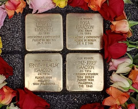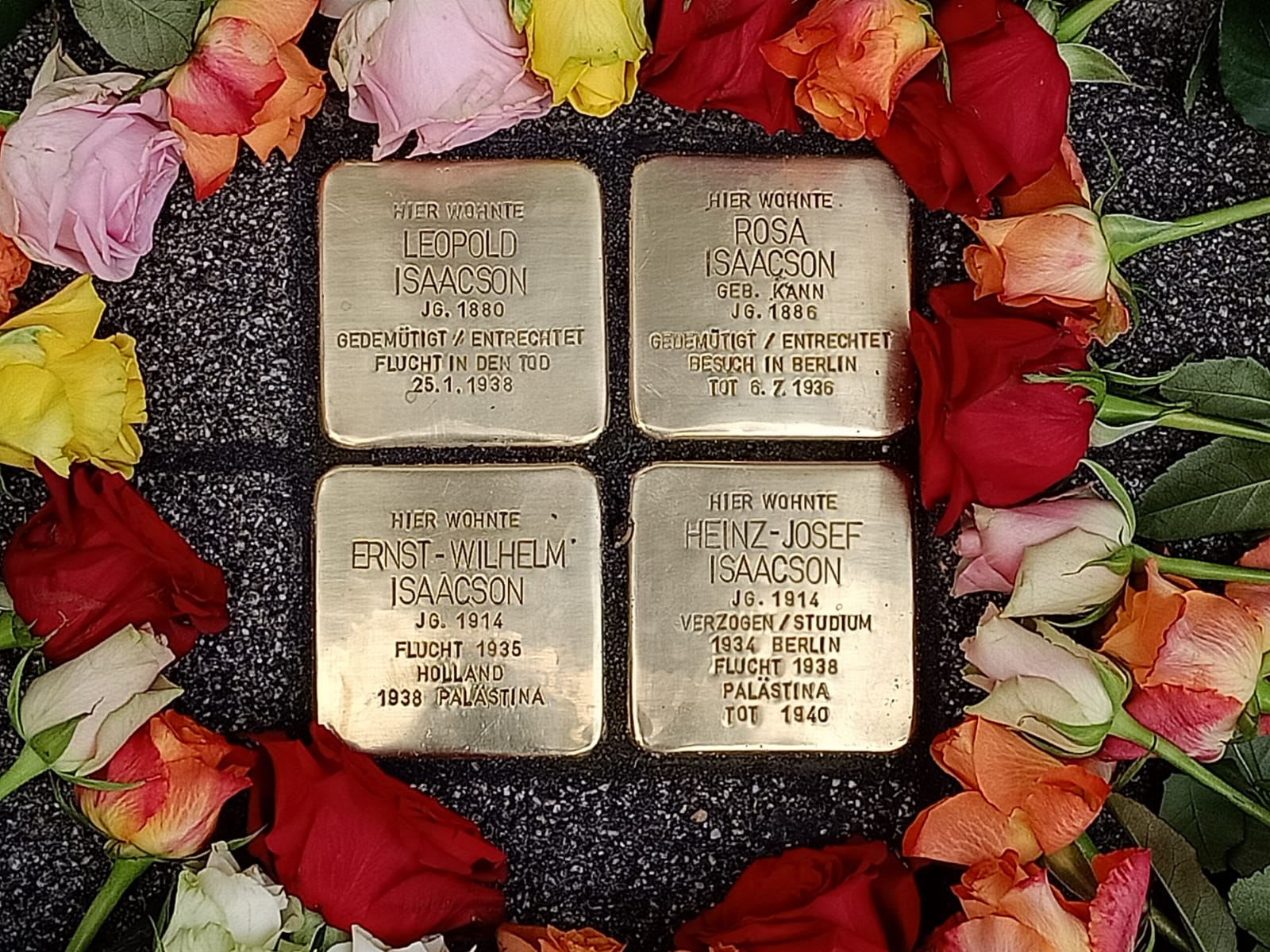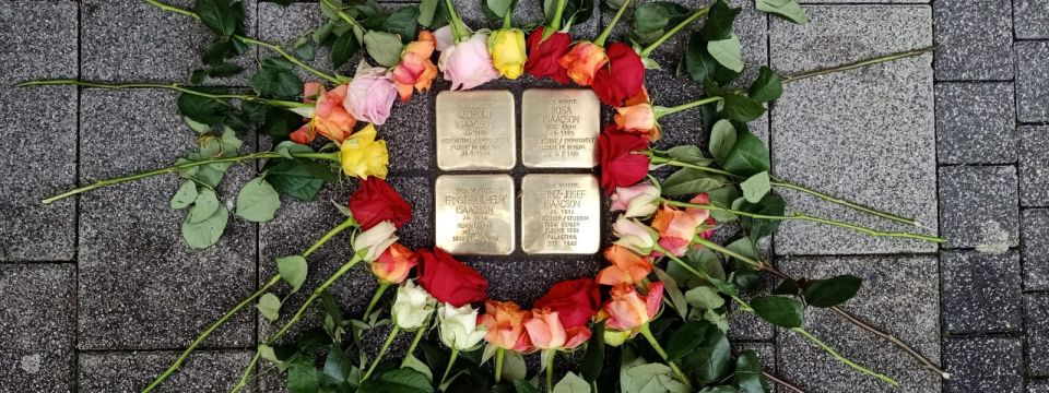 Sehr ergreifend war auch die musikalische Untermalung der Veranstaltung, im Rahmen derer jiddische Lieder gespielt wurden. Zum Abschluss wurden Rosen um die „Stolpersteine“ gelegt.