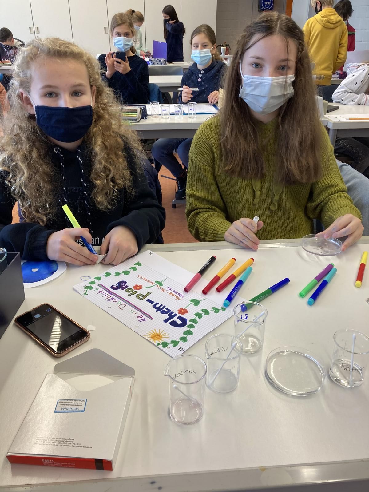 Chem-pions ist ein Experimentalwettbewerb, bei dem zu einer vorgegebenen Fragestellung aus dem Alltag Experimente durchgeführt werden sollen. So standen im Herbst 2020 „Die Zaubermalstifte“ im Mittelpunkt. Die Farben der Stifte verändern sich scheinbar magisch, je nachdem welche Lösung man darüber malt, anschließend sind eigene Zaubermalstifte entwickelt und ausgiebig ausprobiert worden.
