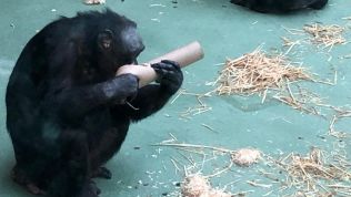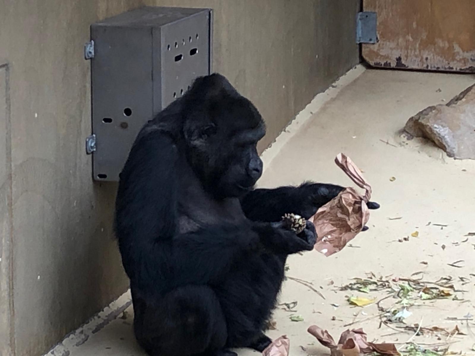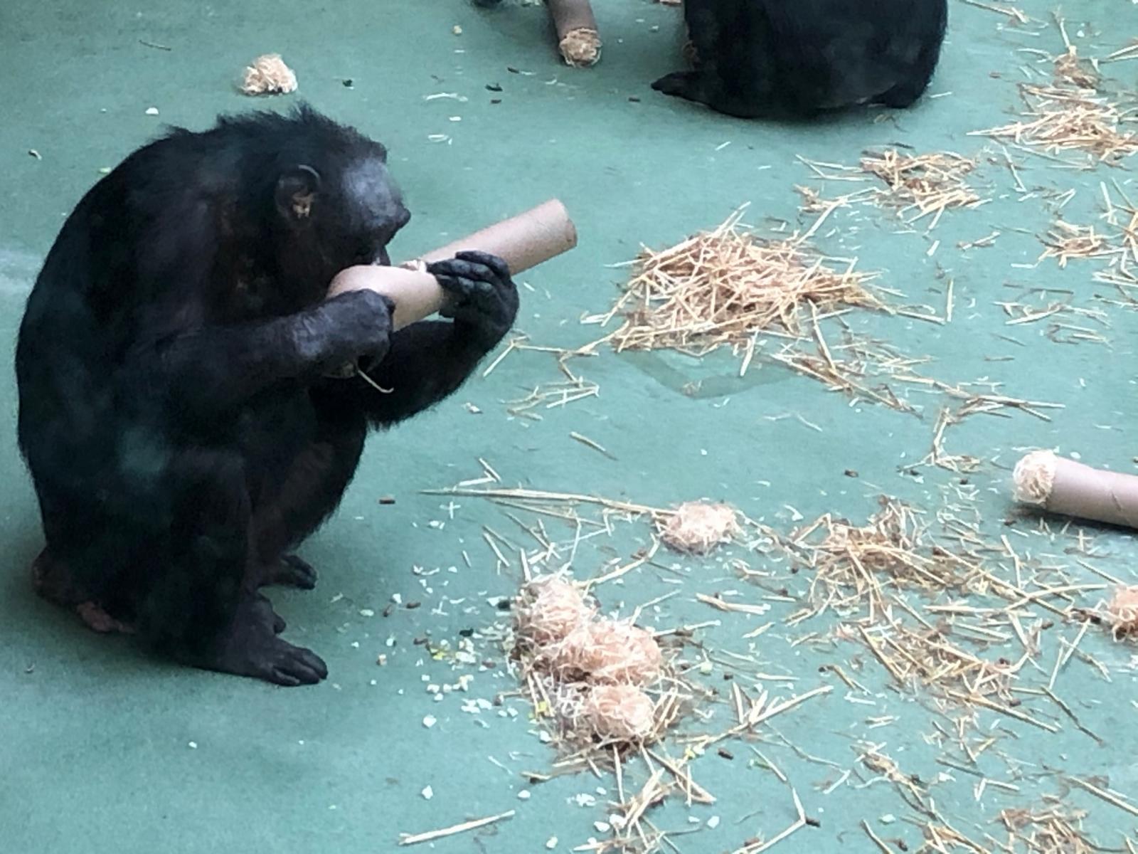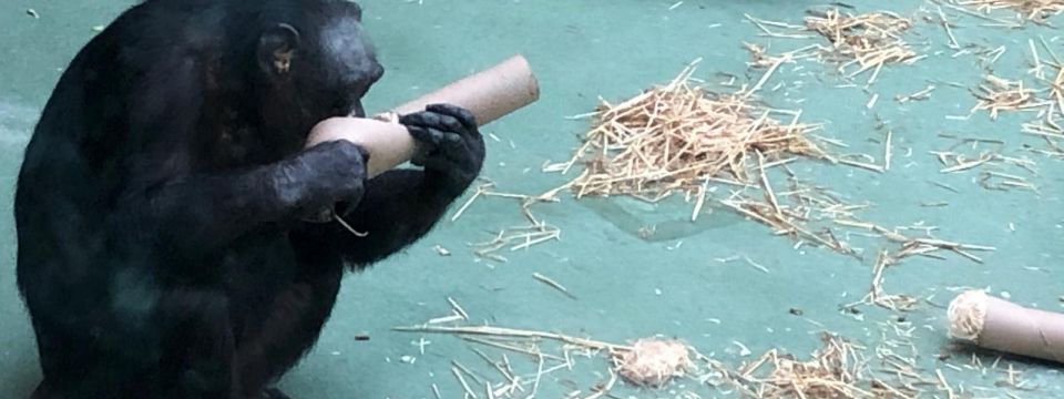 Nun begann der wirklich spannende Teil des Tages: Den Menschenaffen wurden die selbstgebastelten Beschäftigungen gegeben und alle waren sehr stolz, dass die Affen viel Spaß am Auspacken und Naschen hatten. „Wir saßen noch lange im Affenhaus und haben den interessanten Geschichten der Zoomitarbeiter gelauscht, bis die Affen uns signalisiert haben, dass sie nun ihre Ruhe haben wollten“, erzählt Timo.