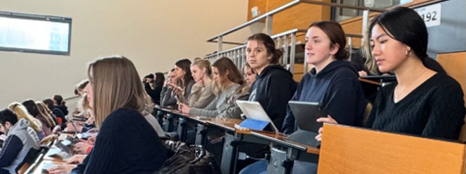 Got a taste of university life: Ms. König attended a lecture on English linguistics with her class.