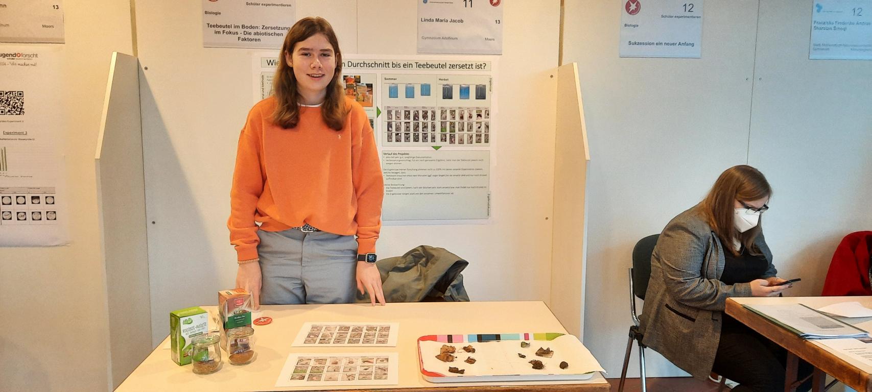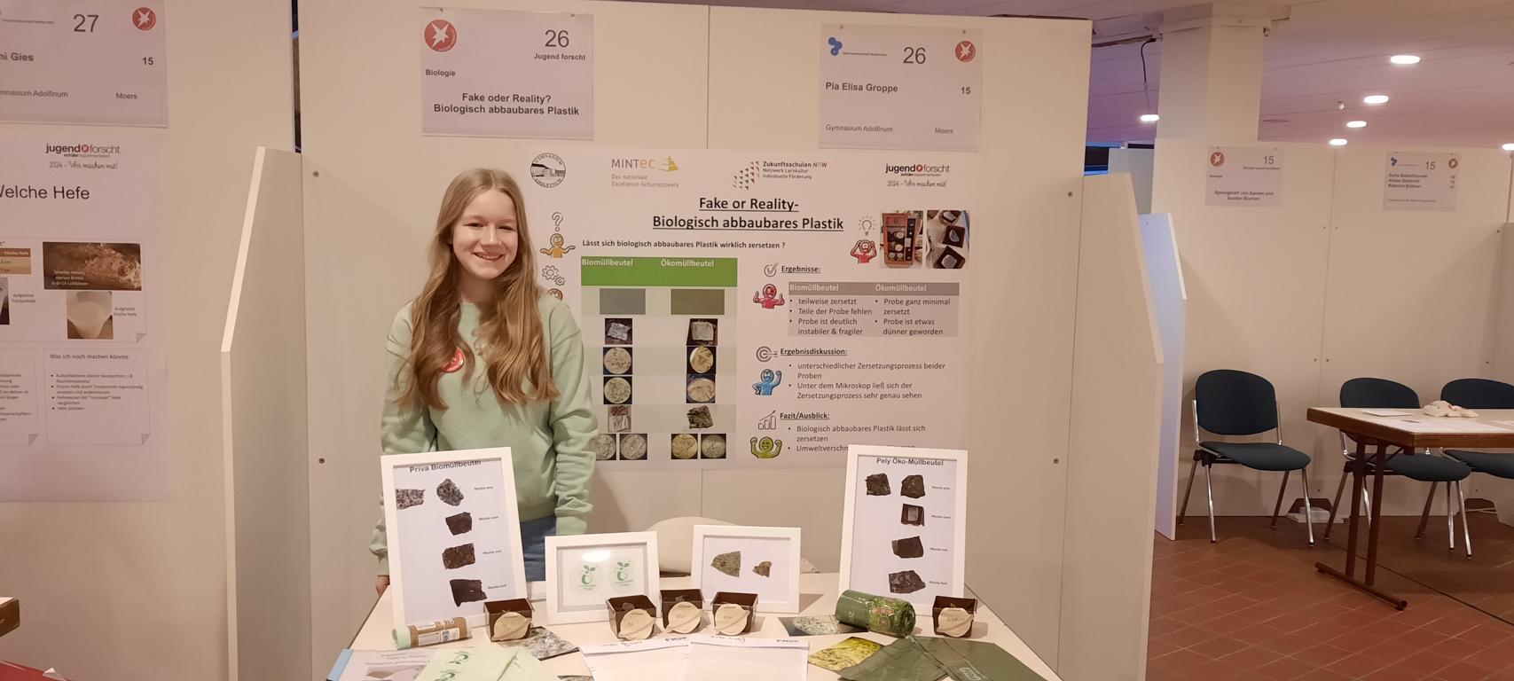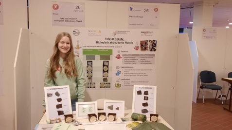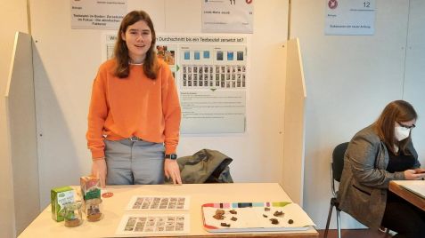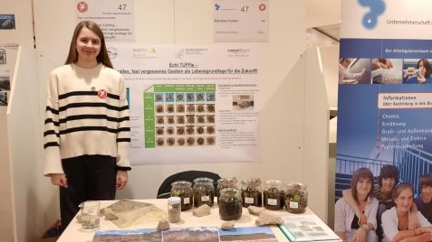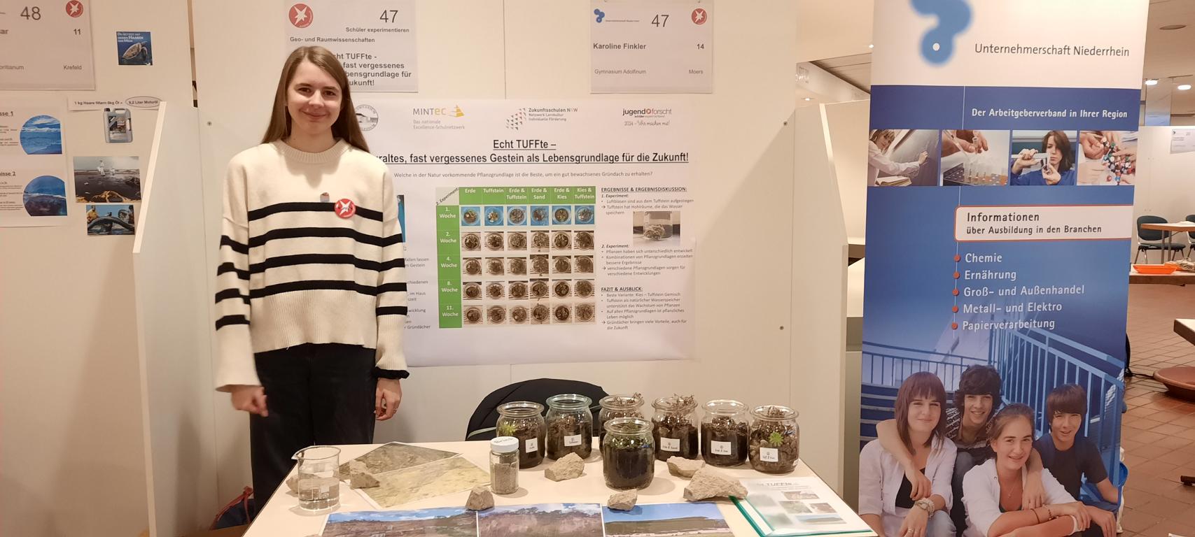 Karoline Finkler aus der 9d erhielt im Fachbereich Geo- und Raumwissenschaften den 2. Platz mit ihrem Projekt „Echt TUFFte – ein uraltes, fast vergessenes Gestein als Lebensgrundlage für die Zukunft!“