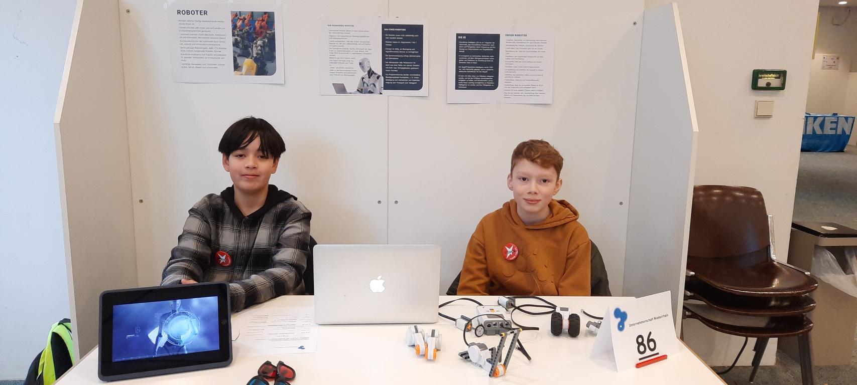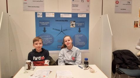 Nachdem alle Plakate hingen und die Tische dekoriert waren, hieß es für die 13 Schülerinnen und Schüler warten bis die Jury kommt. Mit großer Erwartung sah man die Jury, bestehend aus Kleingruppen von 4 – 5 Juroren, näher rücken. Dann endlich standen sie vor dem eigenen Stand und man konnte die Forschungsergebnisse des letzten Jahres präsentieren. Viel zu schnell war dieser Moment vorbei und der entspannte Teil des Tages startete. Nun hieß es, anderen Teilnehmern, Eltern, Großeltern, der Presse und vielen anderen Besuchern zu erzählen, was man Tolles erforscht hat.