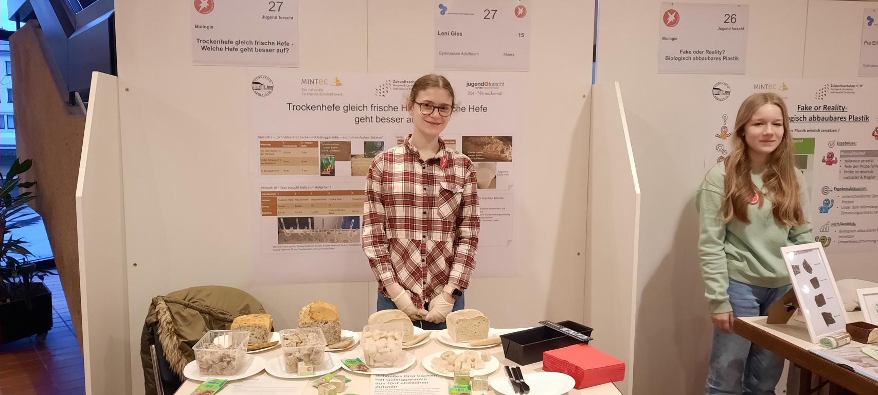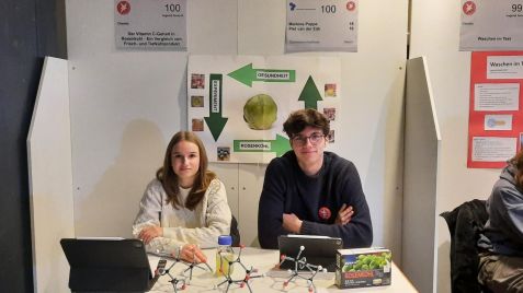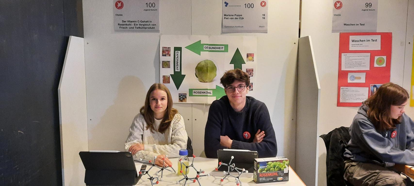 Mit dem Projekt „Der Vitamin C-Gehalt in Rosenkohl – ein Vergleich von frisch. Und Tiefkühlprodukten“ starteten Marlene Pappe und Piet van der Eijk aus der Q1 im Fachbereich Chemie und erhielten den Sonderpreis „Gesundheit“.