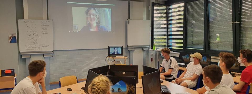 Am 16. Juni erschien ein bekanntes Gesicht auf der Leinwand unseres PC-Raumes: Es war unsere ehemalige Schülerin Mona Hamid, die 2020 ihr Abitur am Adolfinum absolvierte. Seit dem letzten Jahr ist die ehemalige Adolfinerin mit „Aktion Sühnezeichen Friedensdienste“ in Großbritannien und arbeitet dort für das Jüdische Museum in London.