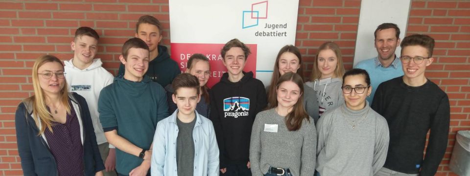 Am Donnerstag den 12. Februar ging es für die Sieger und Juroren der ersten beiden Runden des Schulentscheids von „Jugend debattiert“ nach Dinslaken an das Otto-Hahn-Gymnasium. Das Adolfinum wurde durch  Hendrik Eller, Kilian von Groeling Müller, Tom Steilmann und Lisa Butt aus der neunten Stufe vertreten. Aus der Eph und Q1 vertraten Justus Bösken, Mats Schröder und Ela Karabulut und Julius Fischer das Adolfinum. Als Juroren fuhren Caroline Stecher, Imke Querl und Judith Klumb mit. Herr Heisig-Pitzen und Frau Haustein waren die begleitenden Lehrkräfte.
