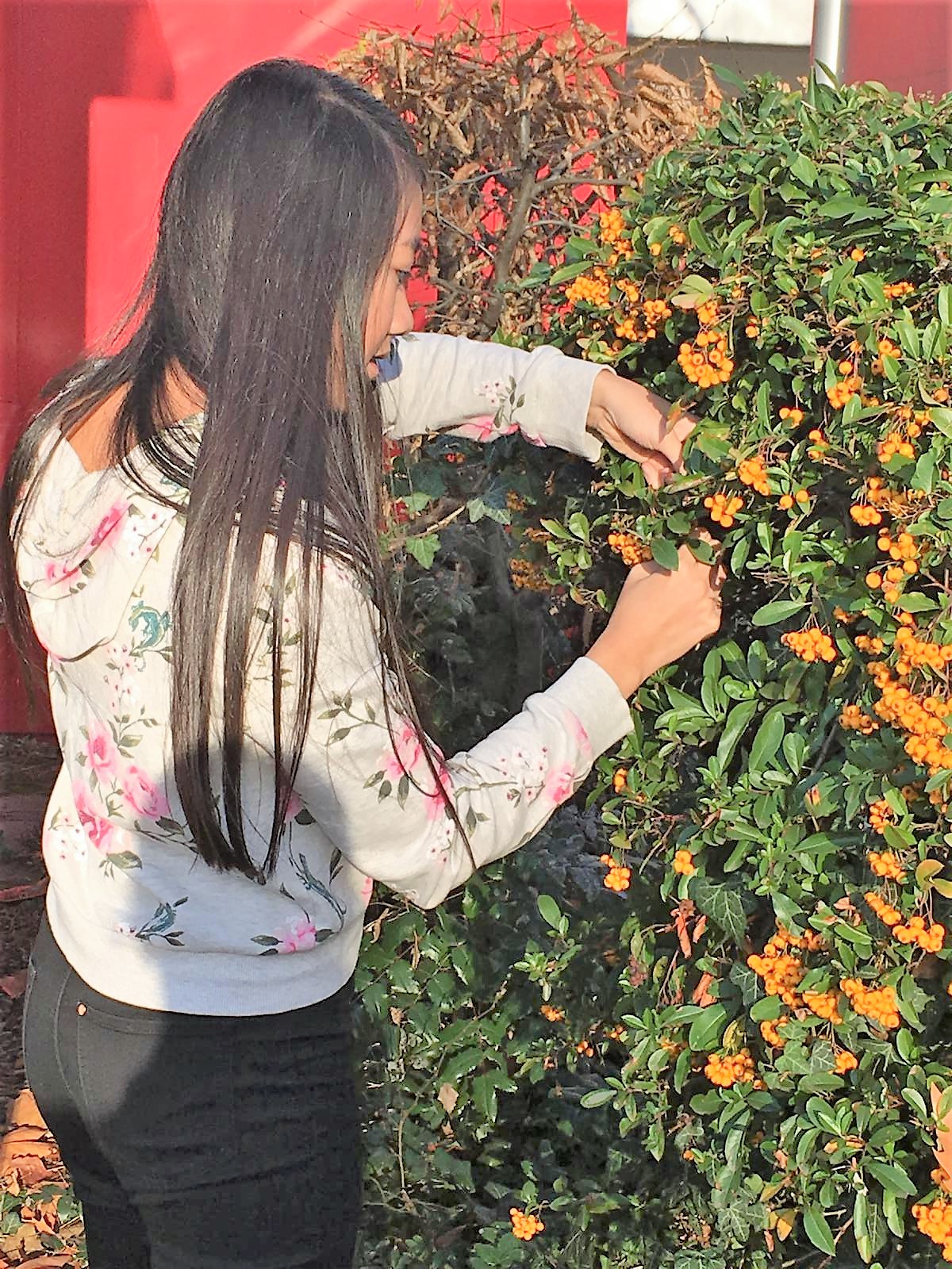 Eine kluge Wahl: Carola Klebuch aus der 6e versteckt das Winterfutter.
