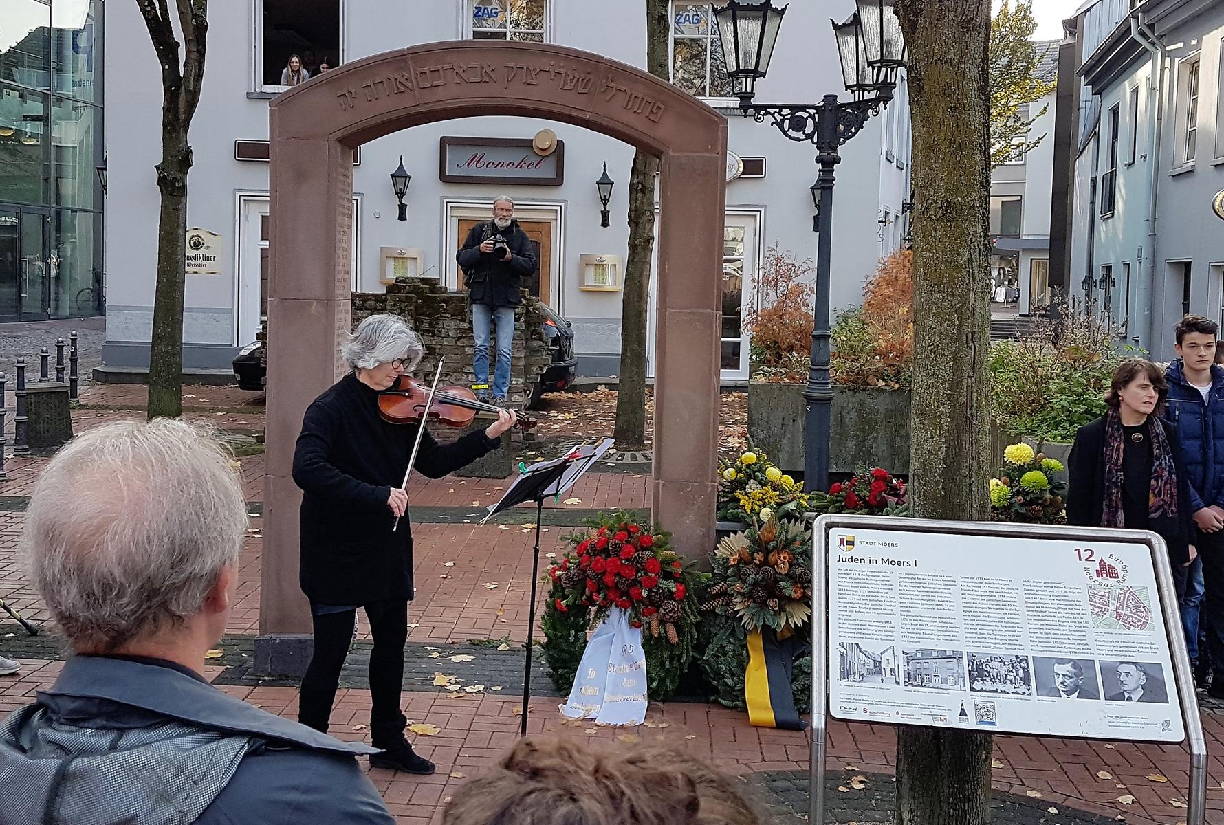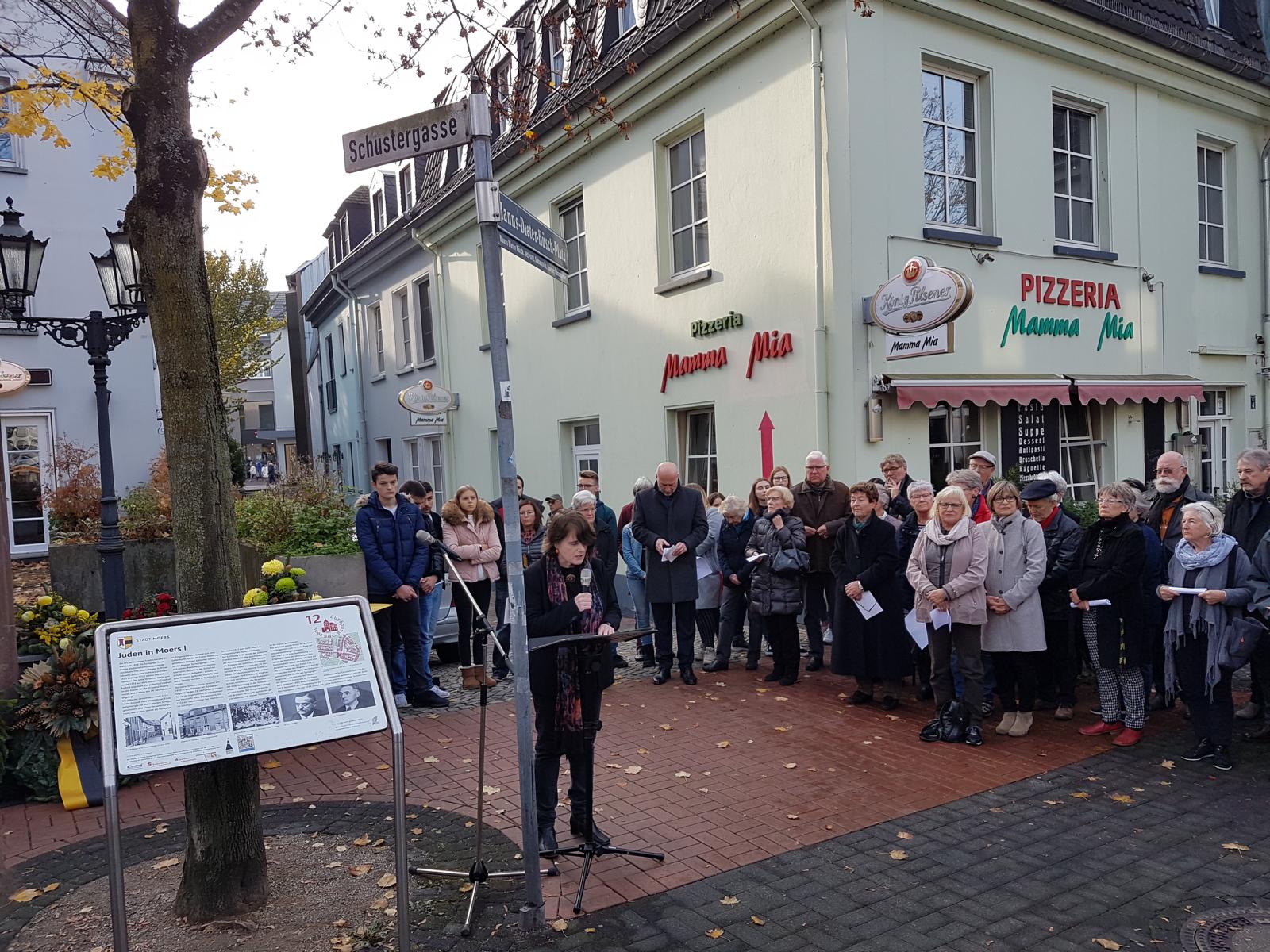 Annette Sommer (Mitglied der Gesellschaft für Christlich-Jüdische Zusammenarbeit Moers und Hebräischlehrerin am Adolfinum) warnte vor aktuellen rassistischen und antisemitischen Tendenzen in der Gesellschaft.