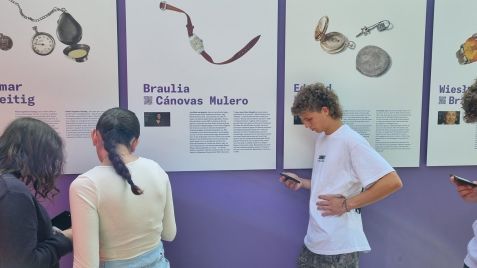 In den vergangenen Wochen haben mehrere Klassen und Kurse die sehr bewegende und lehrreiche Wanderausstellung #StolenMemory der Arolsen Archives besucht. Im Mittelpunkt der Ausstellung stehen persönliche Gegenstände von ehemaligen KZ-Häftlingen. Die Besitzstücke, wie zum Beispiel Uhren, Schmuck oder Fotos, wurden den Opfern gewaltsam entwendet. Die Arolsen Archives setzen sich dafür ein, diese Erinnerungsstücke den Familien und Angehörigen der Verfolgten zurückzugeben. Geschichtslehrer Daniel Schirra hat die Schülerinnen und Schüler begleitet: "Ein herzlicher Dank gilt dem Grafschafter Museum im Moerser Schloss, dem Verein „Erinnern für die Zukunft e.V.“ und der Gesellschaft für Christlich-Jüdische Zusammenarbeit Moers, die die Ausstellung gemeinsam nach Moers geholt haben." Hier berichtet Vanessa Sczepurek (Q2) von ihren Eindrücken.