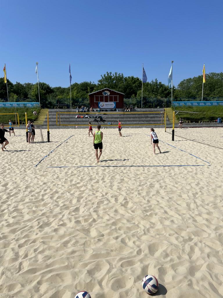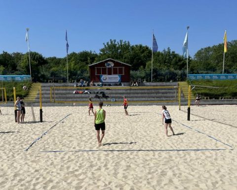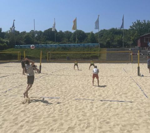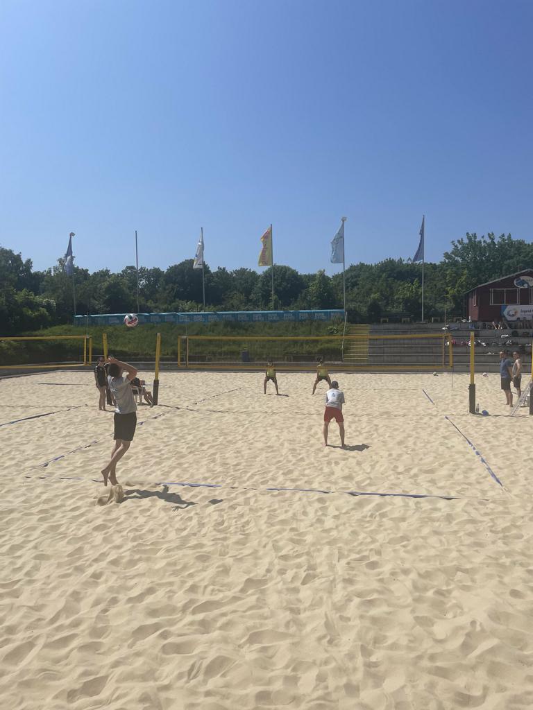 Die Schülerinnen und Schüler des Gymnasiums Adolfinum der Jahrgänge 2006 bis 2009 qualifizierten sich in den vorangegangenen Wochen für das Landesfinale Beachvolleyball, das in Rumeln, Duisburg am 06. Juni dieses Jahres ausgetragen wurden. Man wusste spätestens nach dem Bezirksfinale, dass man einen Sieg nicht geschenkt bekommen würde, doch war man gleichzeitig bis in die Haarspitzen motiviert und erhoffte sich einen siegreichen Tag, den es mit dem „Ticket nach Berlin“ zu krönen galt. Die insgesamt acht qualifizierten Teams aus ganz Nordrhein-Westfalen spielten im gewohnten Modus (Jungen, Mädchen und Mixed). In einem „Jeder gegen Jeden-Turnier“ galt es alle zu schlagen.
