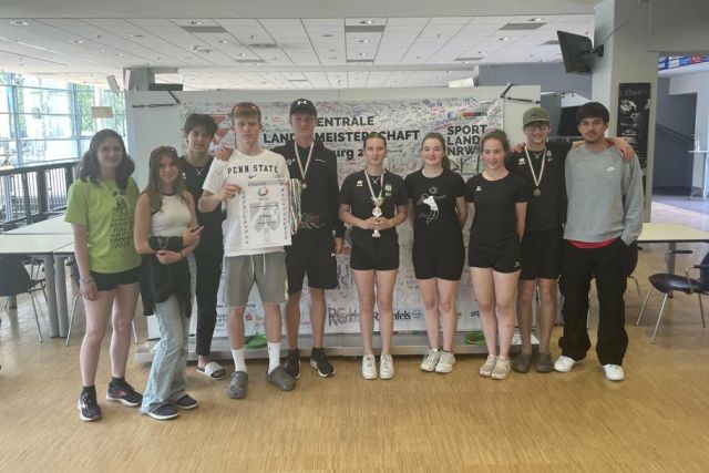 Wenn auch etwas niedergeschlagen, musste man sich eingestehen, dass die Gegner an diesem Tag einfach etwas besser waren. Betrachtet man die Leistung der Schüler:innen jedoch aus einem anderen Blickwinkel, lässt sich sagen, dass das diesjährige Team des Gymnasiums Adolfinum das drittbeste Beachvolleyball Team in der Wettkampfklasse II im gesamten Bundesland waren. Um eben diesen Erfolg gebührend zu würdigen, wurde man zur Siegerehrung in die Schau-ins-Land-Arena nach Duisburg eingeladen. Da alle Landesfinals in allen Sportarten an diesem Tag ausgetragen wurden, wurden jeweils die ersten Drei einer jeden Sportart im Stadion in einer gemeinsamen Siegerehrung geehrt.