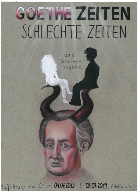 Frei nach Goethes „Faust“ zeigten die Schüler ihre Interpretation des Dramas unter dem Titel „Goethe Zeiten, schlechte Zeiten“. Mit einer gelungenen Mischung aus Originalszenen und Szenen aus dem Hier und Jetzt begeisterten die jungen Schauspieler ihr Publikum.Besonders gelungen: das Spiel mit der Sprache. Der kurzweilige Wechsel von Prosa und Versform überraschte; da flossen die Worte Goethes in ihren Alltagswortschatz ein, und Mephisto wiederum macht sich im Gespräch mit Gott ihre Sprache zu Eigen. Ihr Können und ihr Talent unter Beweis gestellt haben die Schüler mit der Darbietung der originalen Passagen. Gelang es den jungen Darstellern doch diese Verse so zu inszenieren und zu intonieren, dass deren Sperrigkeit für heutige Ohren verloren ging. Eine grandiose schauspielerische Leistung. Besonders hervorzuheben sind hier Jenna Kellerhoff als Gretchen und Julia Weber als Mephisto, die mit ihren Darbietungen ihr Publikum begeisterten. Letzteres belohnte die Arbeit der Schüler mit stehenden Ovationen und langanhaltendem Applaus.