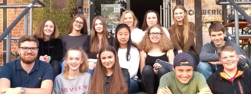 Zum "Slam" im Bollwerk: die Klasse 9f mit Deutschlehrer Nils Koopmann.