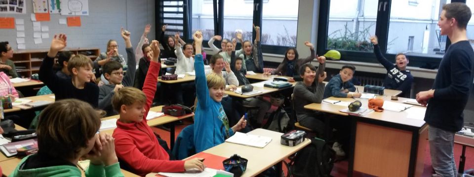 "Besonders wichtig ist neben aller Theorie vor allem die Anwendung von sprachlichen Strukturen", sagt Deutschlehrer Marco Petering. Als besonders gute Anwendungsmöglichkeit erweis sich dabei die Zauber-Show von Timon Müser (Einführungsphase), der den Schülerinnen und Schüler einige seiner Tricks vorführte. "Die zusätzliche Schwierigkeit bei der Beschreibung von Zaubertricks ist, dass man ja nicht immer weiß, wie ein Trick funktioniert", sagt Schüler Lennart Götz aus der 7d. Timons Zaubershow empfand die 7d als eindeutiges Highlight der Unterrichtsreihe: "Obwohl wir wirklich ganz genau hingesehen habe, konnten wir die meisten Tricks einfach nicht durchschauen!", sagen einige Schülerinnen und Schüler nach der Auswertung des Zauberer-Besuches.