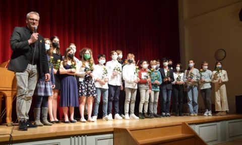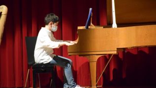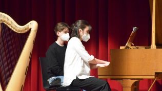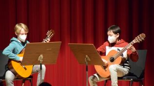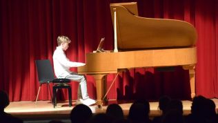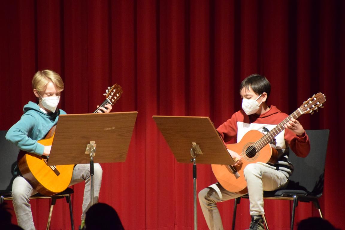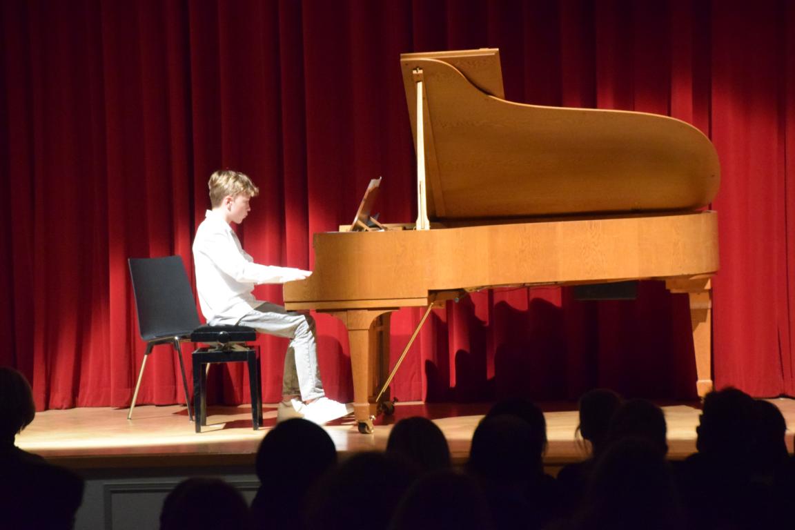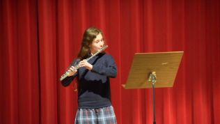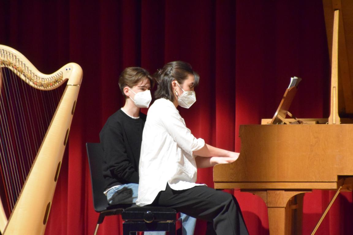 Zum Glück gab es auch kaum Absagen wegen Corona, nur der Beitrag der Percussiongruppe musste aus diesem Grund leider ausfallen. Dies ist umso trauriger, als Julius, der Komponist des Beitrags, in diesem Jahr Abitur macht. Auch für andere Schülerinnen und Schüler war es das letzte Konzert und somit der Abschied von einer langen musikalischen Laufbahn am Adolfinum: Zoe Vukovic am Cello, Anke Völker, Flöte und Emma von Groeling-Müller, Violine, letztere mit einem atemberaubenden Vortrag von Max Bruchs Violinkonzert, toll begleitet von Carolin Folkmar, werden uns allen noch lange in Erinnerung bleiben.