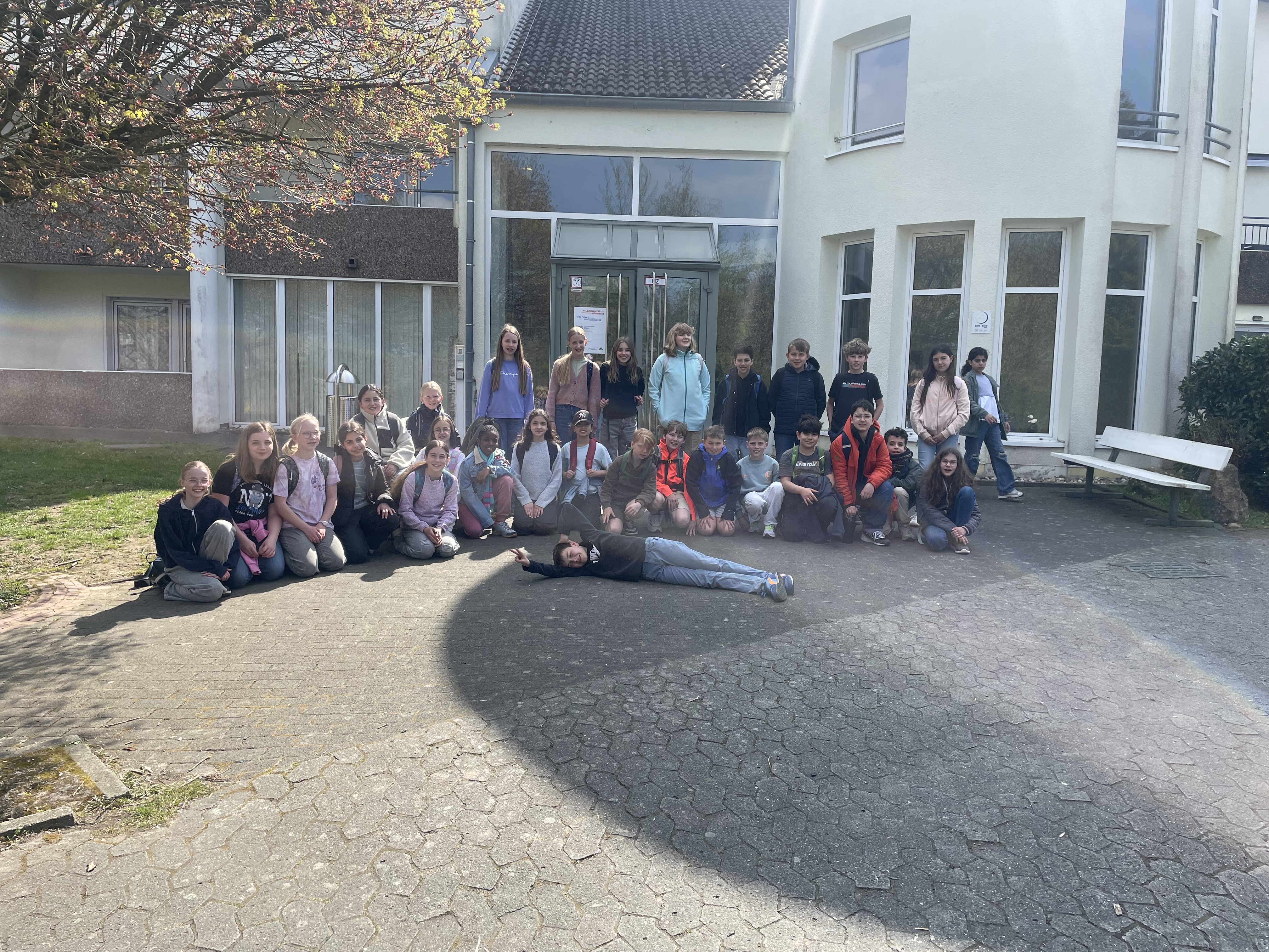 Wir, die Klasse 5a sind in Haltern am See auf Klassenfahrt. Am Montag sind wir für den ökologischen Fußabdruck mit dem ÖPNV gefahren und es hat richtig gut geklappt. Als wir angekommen sind, wurden wir von Michael, dem Leiter der Jugendherberge empfangen. Er erklärte uns die Regeln und danach gab es Mittagessen. Bis zum Abendessen durften wir Tischtennis, Fußball und Beachvolleyball spielen, nachdem wir unsere Bungalows bezogen hatten. Nach dem Abendessen trafen wir uns im Gemeinschaftsraum, um zu spielen und damit Frau Voß und Herr Liesegang uns auf die anstehenden Tagespunkte vorbereiten konnten.