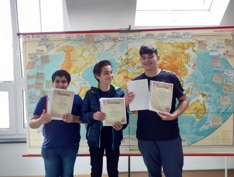 DaZ-Lerner mit tollen Ergebnissen: Rayen Nafouti, Muzaffer Dincer und Fatlind Hamiti habe den Modelltest der Stufe B1 erfolgreich absolviert.