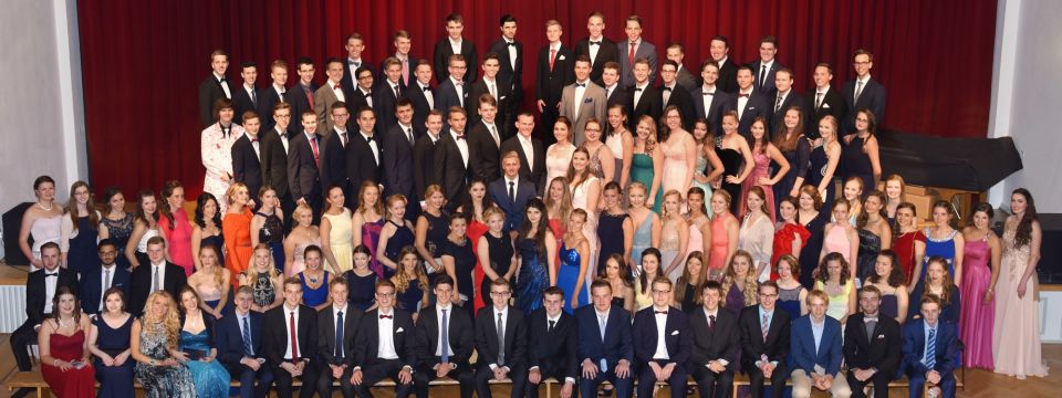 Gruppenbild in der Aula Adolfinum: die Abiturientia 2016.