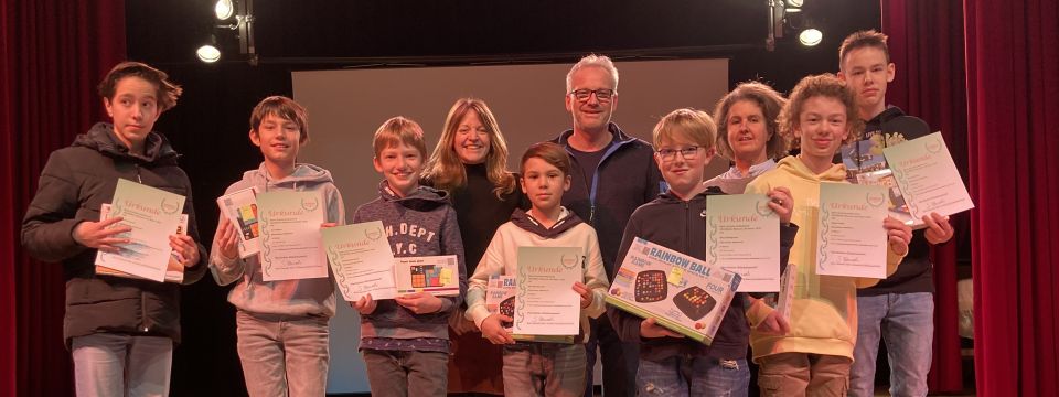 Die Schülerinnen und Schüler des Adolfinums waren beim diesjährigen Heureka-Wettbewerb äußerst erfolgreich: Auf Landesebene überzeugten in der Jahrgangsstufe 6 Lareen Abdulhameed, Theo Spruytenburg und Toni Winter jeweils mit einen ersten Rang. In der Jahrgangstufe 7 erreichte Niko Batschkowski Rang zwei, Lennie Conrad und Jan Hünemann jeweils Rang drei. In der Jahrgangsstufe 8 erreichte Felipe Staden den ersten Rang und Nikos Windgassen den zweiten Rang. Damit erzielte das Adolfinum in NRW Spitzenleistungen, die sich auch auf Bundesebene sehen lassen können. Die Urkunden und Preise wurden im gebührenden Rahmen durch Schulleiter Thorsten Klag und die durchführenden Kolleginnen - Lena Kahlert und Dr. Evelyn Kleine - übergeben.