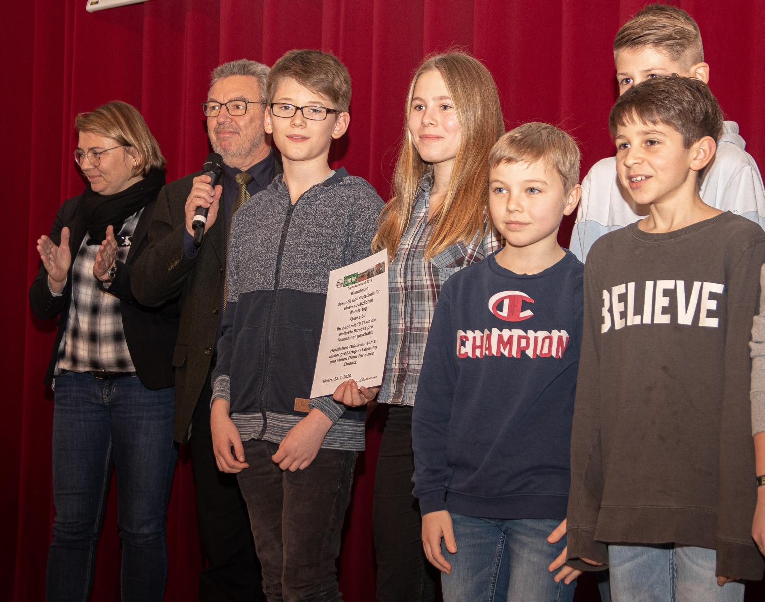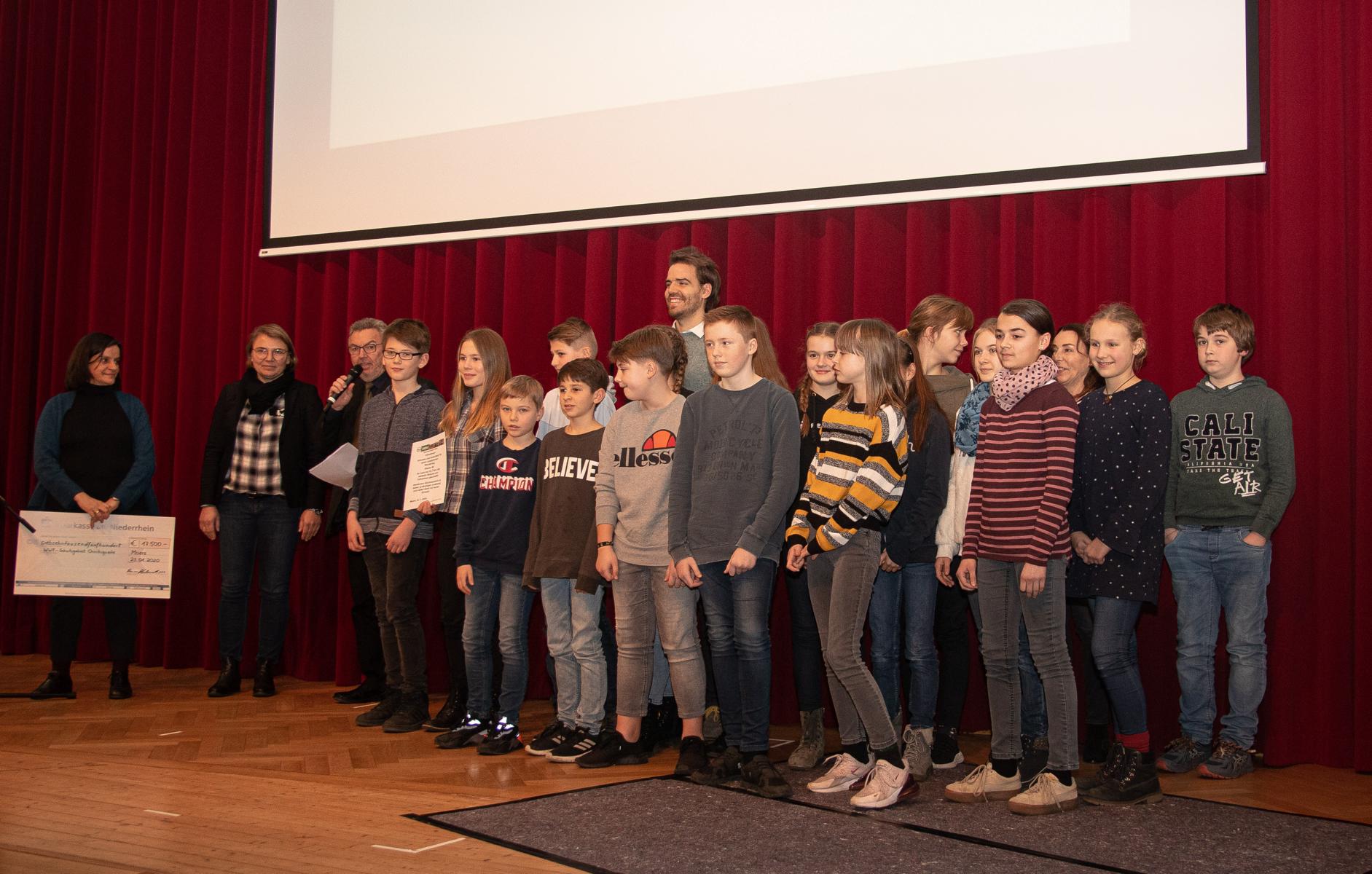 Beim Sponsorenlauf wurden insgesamt 8.061 Kilometer gelaufen und 49.011 Euro gesammelt. Dabei haben die Kinder der Klasse 6d von Barbara Reiss und Lars Heining mit 10,77 Kilometern pro Schüler die weiteste Strecke geschafft. Sie erhielten aus den Händen von Schulleiter Hans van Stephoudt eine Urkunde und dürfen sich über einen zusätzlichen Wandertag freuen.