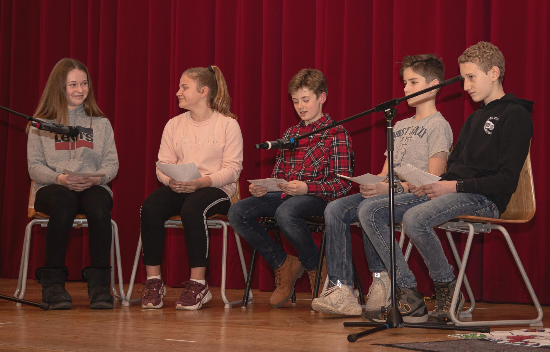 Woher kommt der Artenreichtum im Amazonas-Regenwald? Zu Beginn führte die Expertenrunde der Klasse 7a den Abend ein.