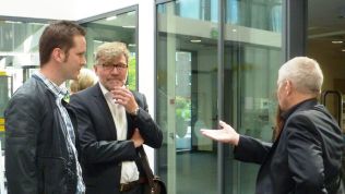 Besuch aus Berlin: Siegmund Ehrmann, MdB (links) und Roland Jahn (rechts) mit Bürgermeister Christoph Fleischhauer.