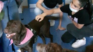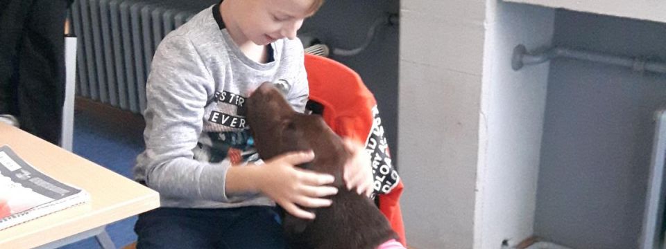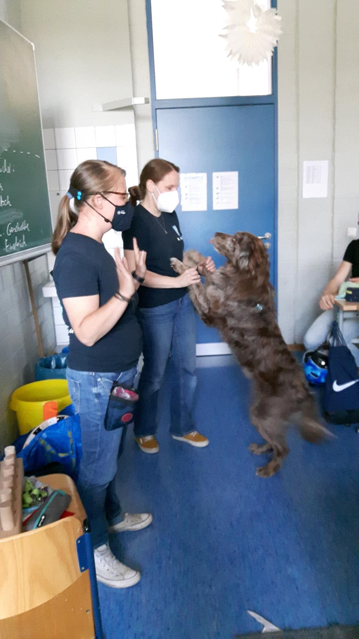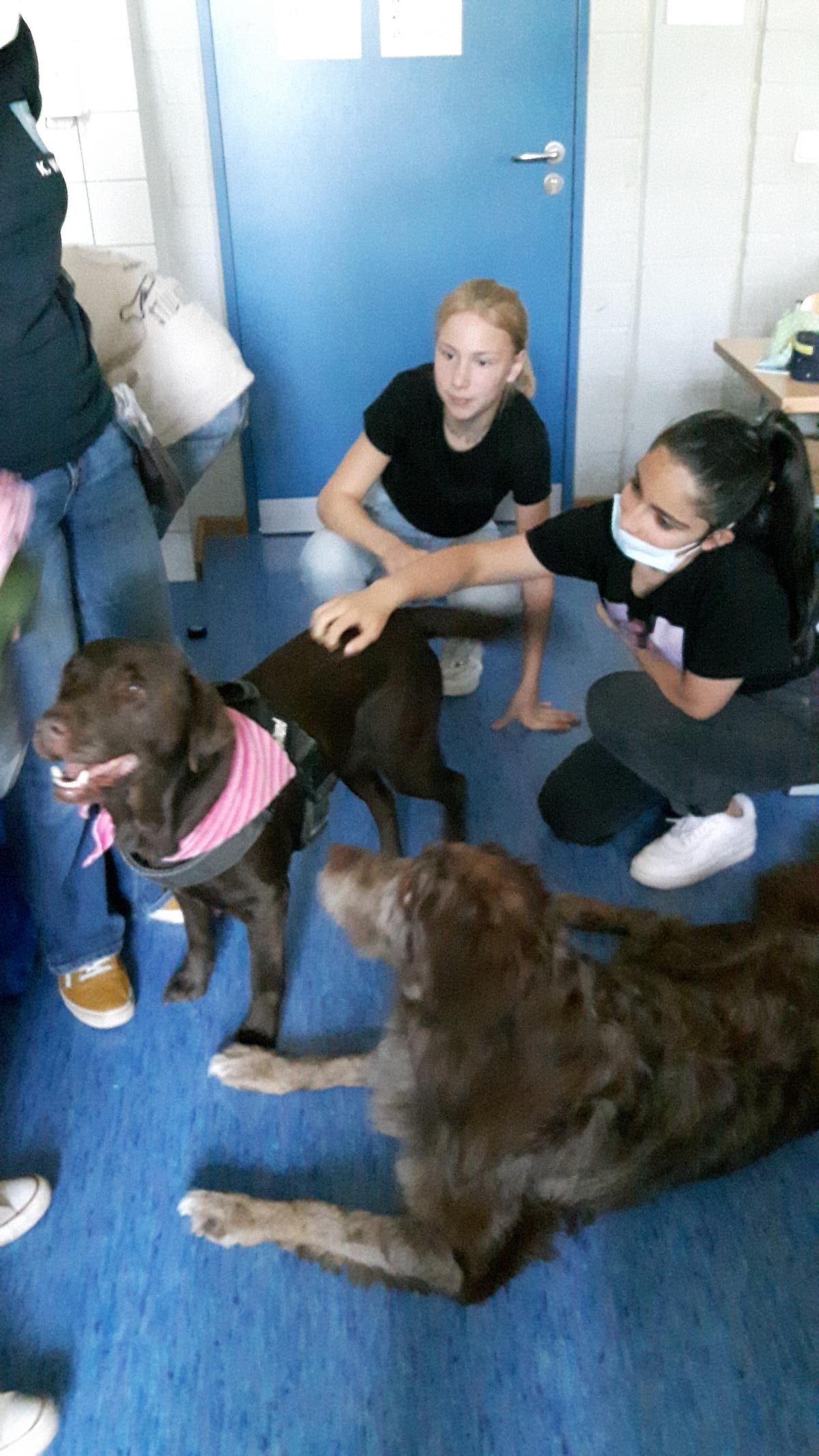 Teams von Sprachtherapeutinnen mit Therapiebegleithunden besuchen 6C