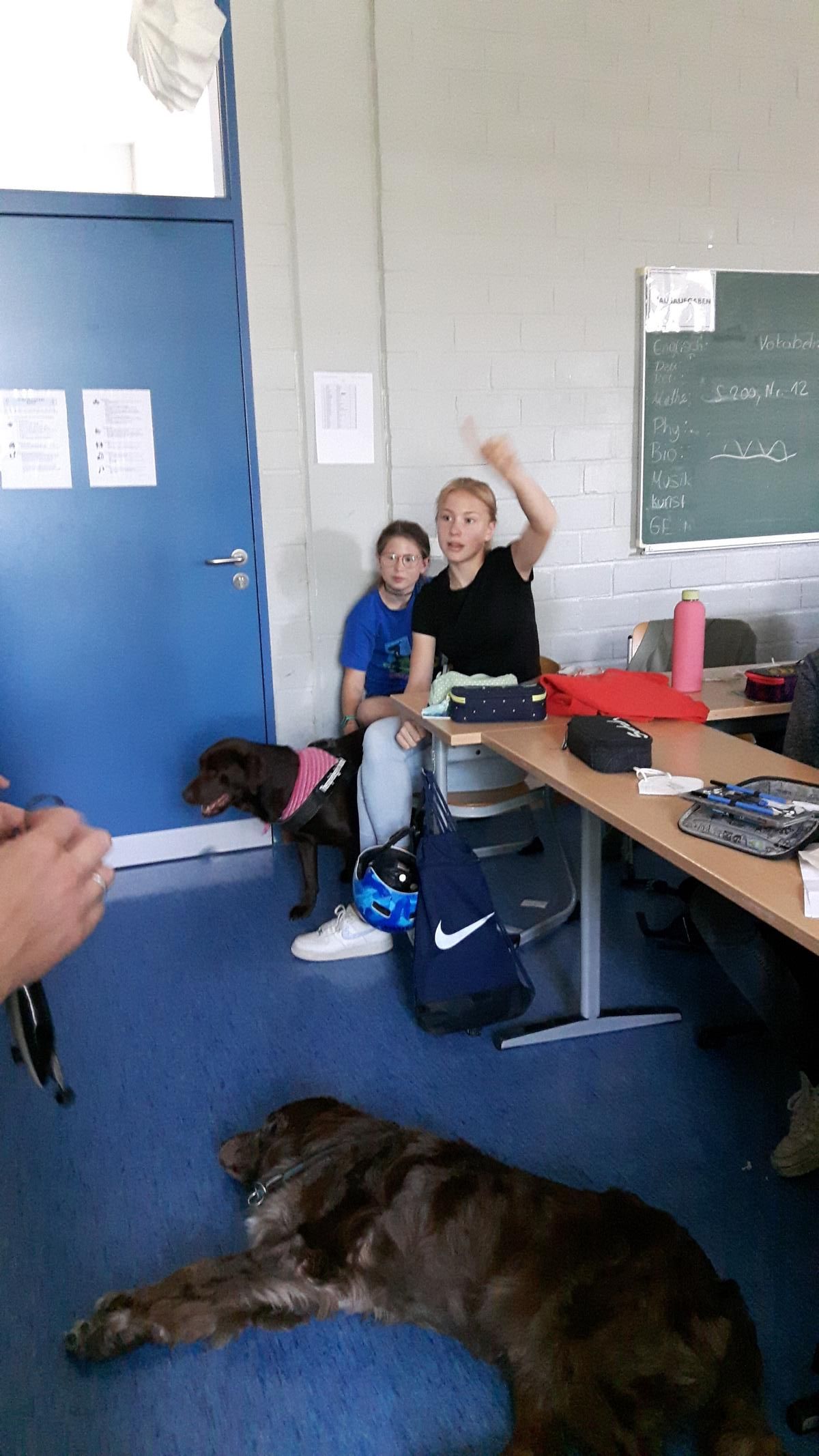 „Kann ich ihn auch mal streicheln?“, „Oh, ich habe Angst vor Hunden!“ - so unterschiedlich fallen die Reaktionen auf Hunde aus. Am 15. Juni 2022 waren jedoch keine gewöhnlichen Hunde im Deutschunterricht der Klasse 6C zu Besuch, sondern zwei Sprachtherapeutinnen mit ihren Therapiebegleithunden Lino und Nele.