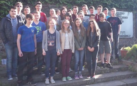 Am 28. April 2015 führte Bernhard Schmidt, Autor des Werkes „Moers im Nationalsozialismus, die Klasse 9a durch die Moerser Innenstadt, um den Schülern die Zeit des Nationalsozialismus in ihrer Heimatstadt vor Augen zu führen. Die Schüler interessieren sich sehr für die Geschichte von Moers und sind schockiert wie Moers im Dritten Reich aussah, dies wird durch Fotos und einen engagierten Vortrag von Herrn Schmidt noch gefördert. Immer wieder sind Schüler betroffen und äußern beispielsweise: „Oh, hier bin ich schon 1000 Mal hergelaufen, aber ich habe nie gesehen, dass hier einmal ein Wohnhaus der Juden war.“ Der Schüler Torben sagte am Ende der Führung: „Jetzt sieht man Moers ganz anders und weiß, dass hier auch so was Schlimmes stattgefunden hat und nicht nur weit weg in Berlin.“