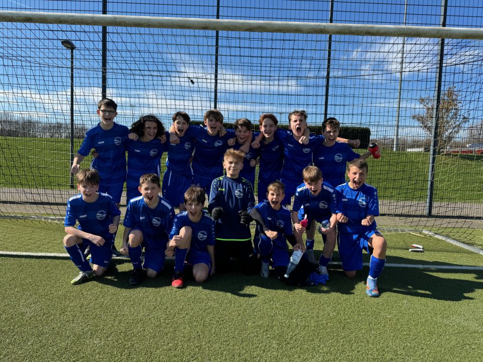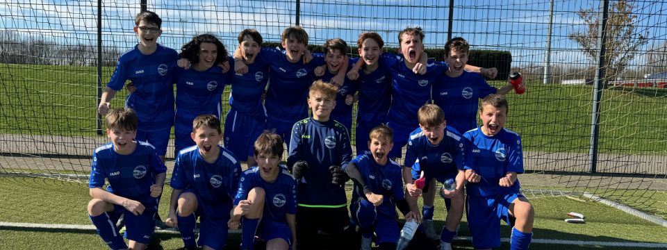 Bei sonnigem Wetter bezwangen die Spieler des Adolfinum im ersten Spiel die Mannschaft des THG-Dinslaken mit 3:0. Marco Fedorenko vom VfL Repelen erzielte die Führung mit einem sehenswerten Distanzschuss, die Simon Stokvis und Simon Spitzer (ebenfalls vom VfL Repelen) ausbauten. Da die Dinslakener auch im Folgespiel gegen das AVG Wesel unterlagen (1:2), kam es im abschließenden Spiel auf der Großsportanlage Filderstraße zu einem echten Endspiel. Während beide Mannschaften in der ersten Halbzeit gleichwertig agierten und gute Chancen herausspielten, war die zweite Halbzeit ein Ansturm auf das Weseler Tor. Den Führungstreffer aus Moers durch Simon Stokvis konnte das AVG jedoch glücklich ausgleichen. So kam es zum Entscheidungsschießen, das das Adolfinum dank Toren von Marco Fedorenko, Noah Degner (Bayer Uerdingen) und Simon Spitzer vor allem dank der herausragenden Leistung von Keeper Caspar Best (VfB Homberg) für sich entscheiden konnte. Herzlichen Glückwunsch an das gesamte Team zu diesem großartigen Erfolg!