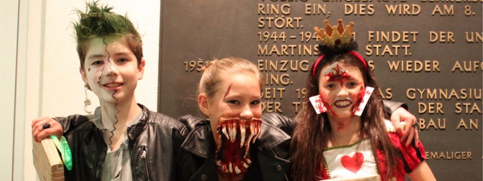 Alljährlich im November: finster-fröhliche Gestalten im Adolfinum - hier die Sieger des Kostümwettbewerbs.