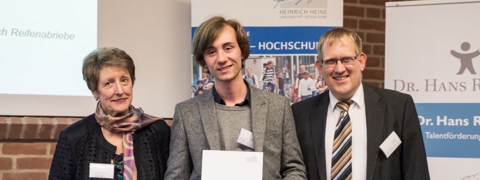 Jan Pütter - Schüler in der Qualifikationsphase des Adolfinums - hat beim jährlichen Wettbewerb von Heinrich-Heine-Universität Düsseldorf und Dr. Hans Riegel-Stiftung mit seiner Facharbeit den zweiten Platz im Fach Chemie gewonnen. In seiner Arbeit ging Pütter der Frage nach, wie groß die Umweltbelastung durch den Abrieb von Autoreifen ist - seine Ergebnisse überzeugten die Jury. Professor Peter Westhoff, Prorektor für Forschung und Transfer: "Um sich in solch einem Feld durchzusetzen und der Begutachtung durch kritische Professoren standzuhalten, bedarf es besonderer Tugenden und Fähigkeiten: Ausdauer, Präzision und sicherlich auch Kreativität bei der Auswahl der wissenschaftlichen Fragestellung, die man verfolgt." Und auch Schulleiter Hans van Stephoudt gratulierte Jan Pütter: "Der zweite Platz in solch einem hochkarätigen Wettbewerb ist ein herausragendes Ergebnis, auf das Jan sehr stolz sein kann".
