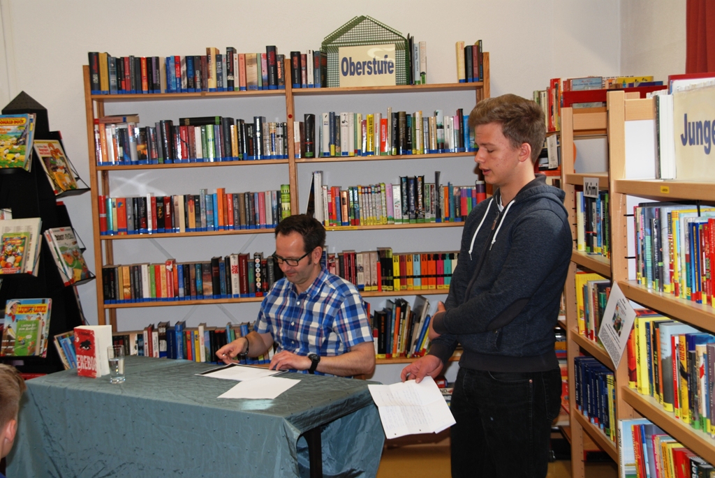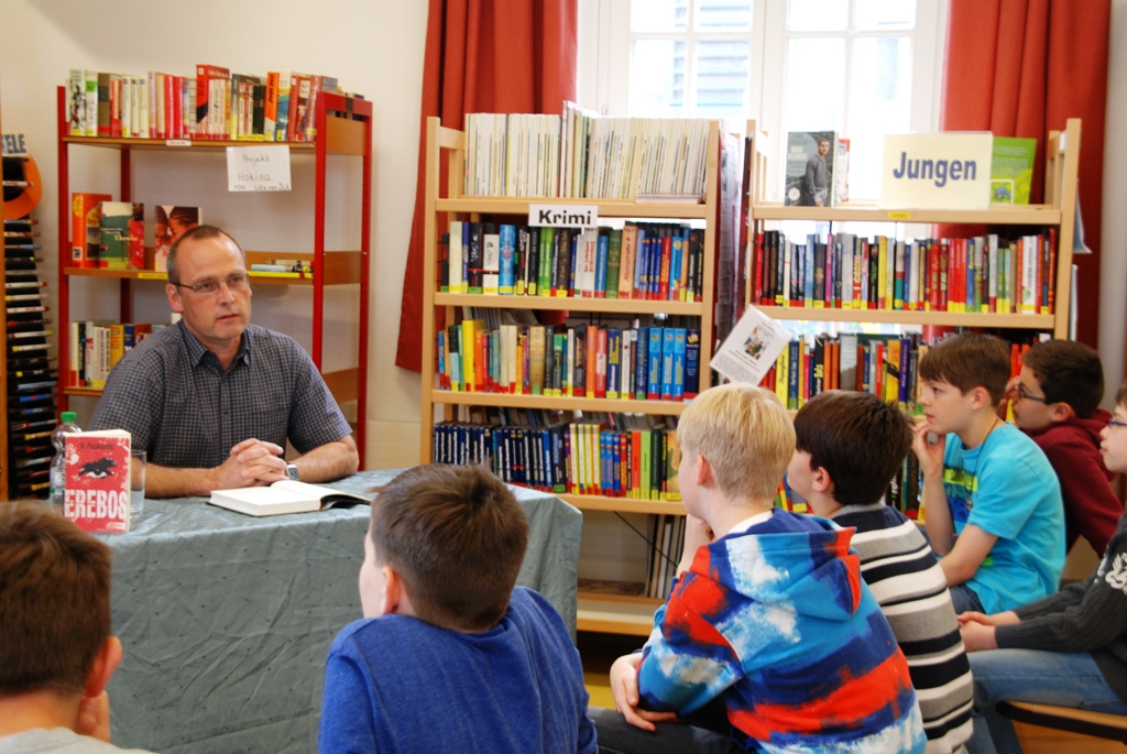 Sehr unterschiedliche Bücher wurden den Schülern dargeboten: die lustigen Anekdoten von der geplagten Lehrerin Frau Freitag aus „Chill mal Frau Freitag“, Abenteuer und Spannung hingegen gab es bei den Geschichten der „Templer“. Das aktuelle Thema – Computerspiele- wurde durch den ausgezeichneten Jugendroman „EREBOS“ repräsentiert.