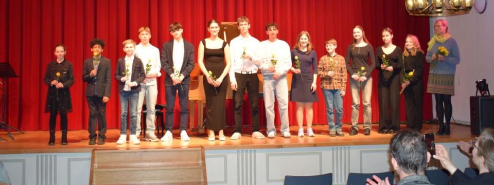 Sichtlich stolz: Alle Solistinnen und Solisten des „Podiums“ am 18. März 2025.