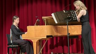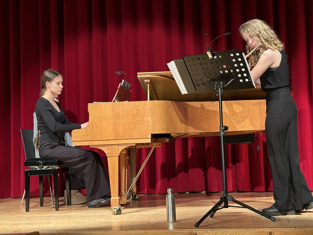 Zum Abschluss folgten noch einige musikalische Höhepunkte: Mia Lenz und Birte Goßem beeindruckten im Duett mit Klavier und Querflöte – ihr Beitrag ist auch für die Landesausscheidung von „Jugend musiziert“ vorgesehen.
