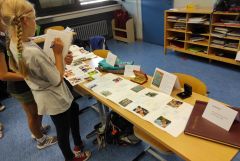 Im Unterricht wurde dann eine Ausstellung durchgeführt, in der alle Klassenmitglieder Einblicke in die Familiengeschichte ihrer Mitschüler bekamen. Mehrere Exponate aus Familienbesitz ergänzten dabei die Impressionen, so gab es bspw. auch einen indischen Sari, einen klassischen Fotoapparat aus den 70ern, DDR-Münzgeld, Steine aus der Berliner Mauer oder eine Audio-Kassette zu sehen.