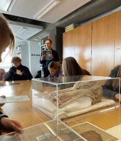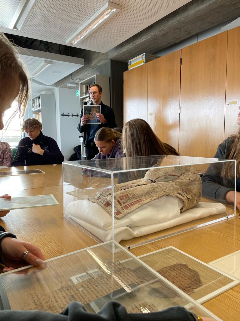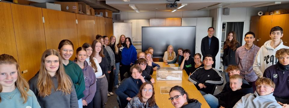 Am Dienstag, dem 16. Januar 2024, besuchte der Griechischkurs der 10. Klassen des Gymnasiums Adolfinum mit ihrem Lehrer Herrn Dr. Backhuys und Frau Kratz die Papyrussammlung des Instituts für Altertumskunde im Philosophikum der Universität zu Köln. Dort konnten wir uns originale Texte aus der Antike ansehen.