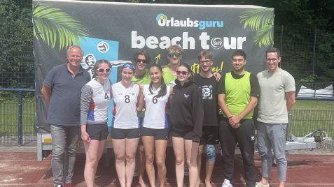 Nach einigen mehr oder weniger anspruchsvollen Runden der Qualifikation stand für acht Schülerinnen und Schüler des Adolfinums am Mittwoch, den 19.06.2024, das Landesfinale der Schulen in der Sportart Beachvolleyball auf dem Programm. Dazu ging es für Sonja Sophia Ilting, Liv Berns, Mia Meißner, Pia Züscher, Jonas Frankenbusch, Kanber Yumsak, Timo Bernoth und Oscar Kurella um acht Uhr morgens mit einem Kleinbus zur Beachvolleyball-Anlage nach Marl.