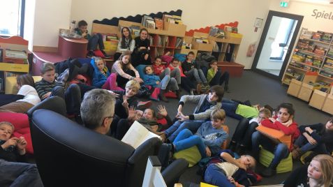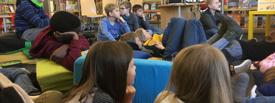 Besonders gut gefallen hat der Klasse 5d die Geschichte „Geisterritter“ von Cornelia Funke, die sehr engagiert von vorgelesen wurde. Anschließend hat die Klasse das Buch sogar von der Stadtbibliothek geschenkt bekommen und kann die Geschichte weiter gemeinsam in der Klasse lesen und sich gegenseitig vorlesen. Über ein Buchgeschenk freuen konnte sich auch die 5c: „William Wenton und die Jagd nach dem Luridium“ von Bobbie Peers fesselte die Zuhörer so sehr, dass die große Pause fast vergessen wurde.